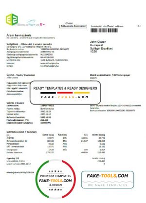 Hungary FIDESZ easy to fill utility bill template in Word and PDF format