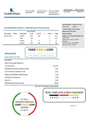 Iceland National Power Company of Iceland Landsvirkjun electricity utility bill template in Word and PDF