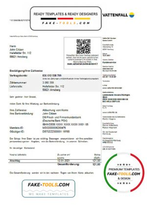 Germany VATTENFALL utility bill template in Word and PDF format (in German language)