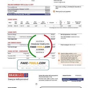 Brazil Gas utility bill template in Word and PDF format
