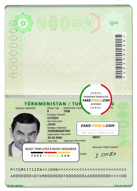Grab now fully editable Turkmenistan Passport Psd Template from our website mr verify and put your own info to create a fake copy of Fake Turkmenistan passport psd template and ready your own novelty documents. It’ll be so beneficial if your ID Card is expired, stolen or not available. We also have passport psd template, fake ID Card psd template, Bank Statement psd template, fake driver license psd template & utility bill psd template.